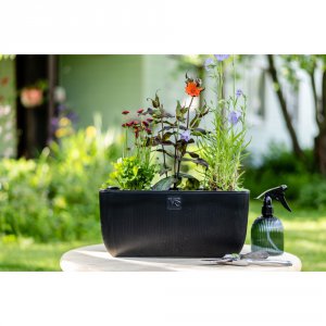 Кашпо пластик Вилла 14л антрацит с поддоном