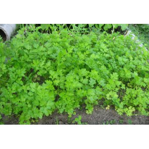 Среднеспелый (80 дней от всходов до уборки на зелень) сорт для выращивания в открытом и защищенном грунте. Листовая розетка высокая (до 75 см), прямостоячая. Листья темно-зеленые, нежные, ароматные, хорошо отрастают после срезки .Масса одного растения 60-80 г. Ценность сорта: высокая урожайность и качество зелени, пригодность к механизированной уборке, усточивость к полеганию, длительное сохранение зеленью товарных качеств при хранении и транспортировке. Уборку листьев производят периодически, по мере необходимости. Семена высевают с апреля в течение всего сезона. Практикуются подзимние посевы.