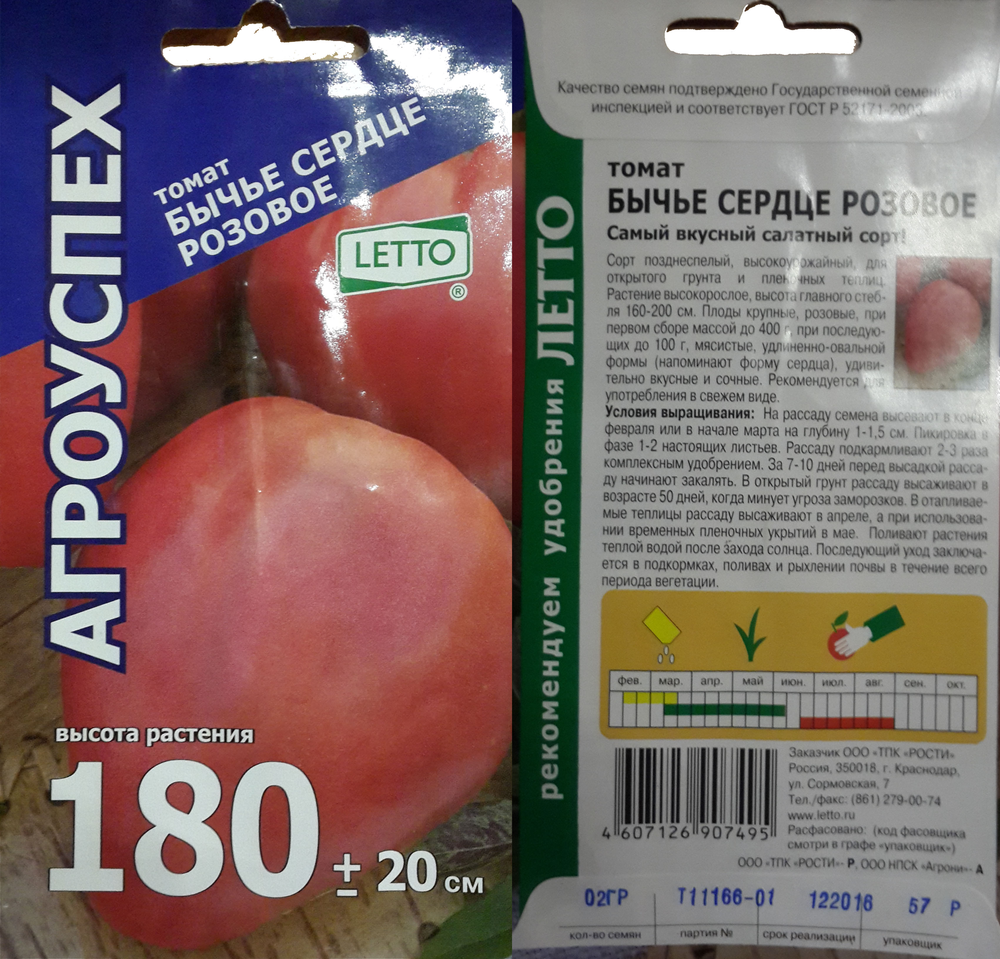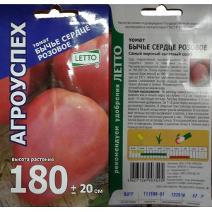 Растение высокорослое, высота главного стебля 160-200 см. Плоды крупные, розовые, при первом сборе массой до 400 г, при последующих до 100 г, мясистые, удлиненно-овальной формы (напоминают форму сердца), удивительно вкусные и сочные. Рекомендуется для употребления в свежем виде.